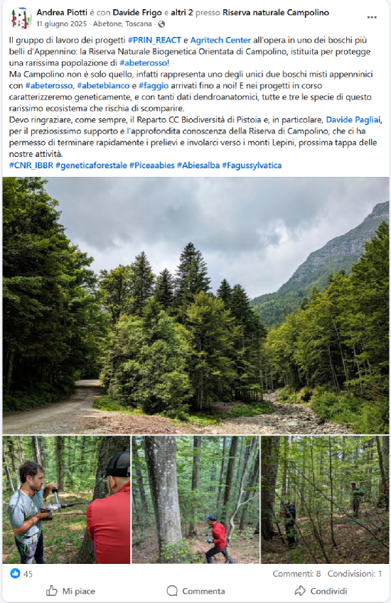 - Piotti A, Avanzi C. Are we really preserving Italian forest genetic resources for the future? VII GoForTress PhD School – Ecomuseo, Parco Nazionale Foreste Casentinesi Monte Falterona e Campigna, Moggiona, Dec 3rd-4th 2025