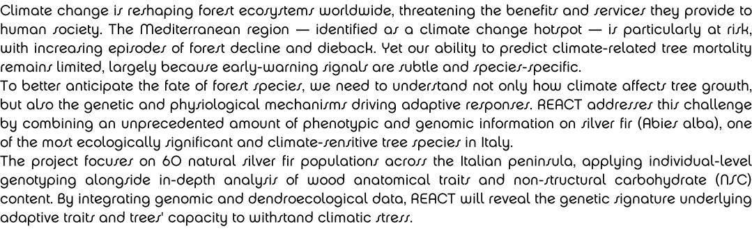 - Piotti A. Indagini genetiche per la conservazione delle risorse forestali: il caso dell’abete bianco? Seminar @ UNIUD invited by Fabio Marroni, course ‘Genetics’ - Dec 18th 2024